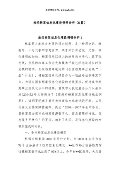 / 【七哥公文】2024年:(8篇)推动档案信息化建设调研分析+更多免费公文+VX:QiGeGongWen2024