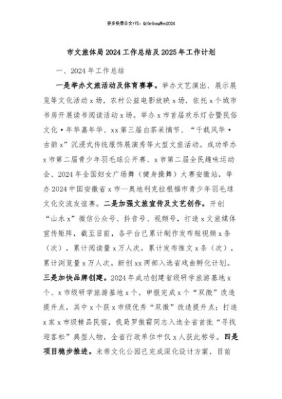 / 【七哥公文】2024年:市文旅体局2024工作总结及2025年工作计划+更多免费公文+VX:QiGeGongWen2024