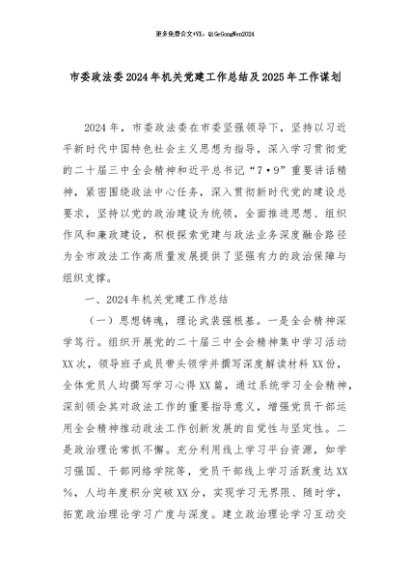 【七哥公文】2024年:市委政法委2024年机关党建工作总结及2025年工作谋划+更多免费公文+VX:QiGeGongWen2024