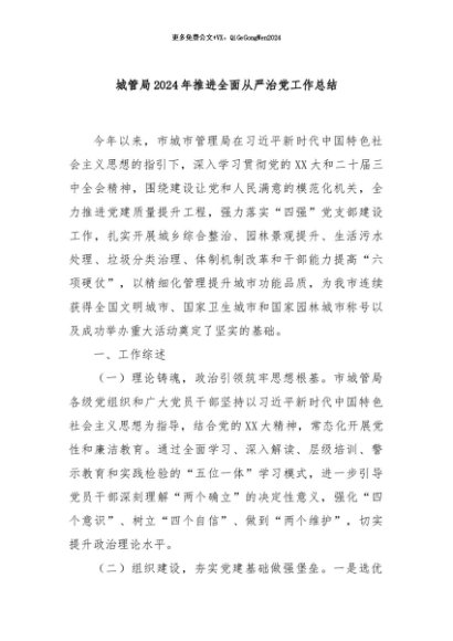 / 【七哥公文】2024年:城管局2024年推进全面从严治党工作总结+更多免费公文+VX:QiGeGongWen2024