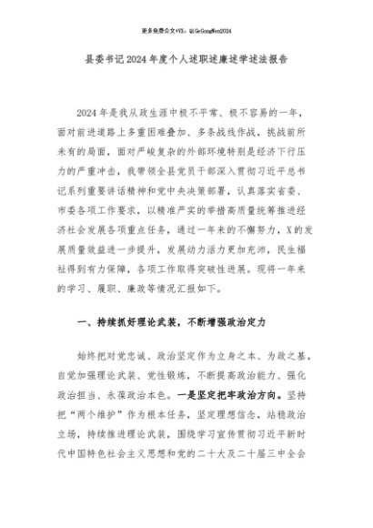 / 【七哥公文】2024年:县委书记2024年度个人述职述廉述学述法报告+更多免费公文+VX:QiGeGongWen2024