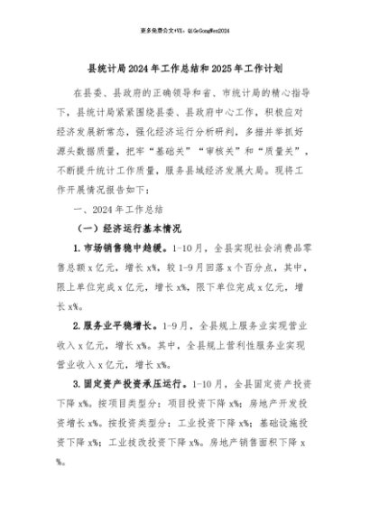 / 【七哥公文】2024年:县统计局2024年工作总结和2025年工作计划+更多免费公文+VX:QiGeGongWen2024