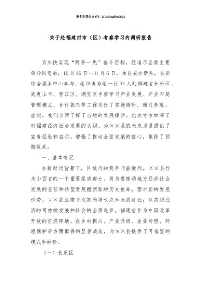 / 【七哥公文】2024年:关于赴福建四市(区)考察学习的调研报告+更多免费公文+VX:QiGeGongWen2024