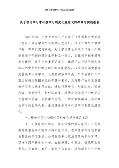 【七哥公文】2024年:关于理论学习中心组学习制度化规范化的探索与实践报告+更多免费公文+VX:QiGeGongWen2024