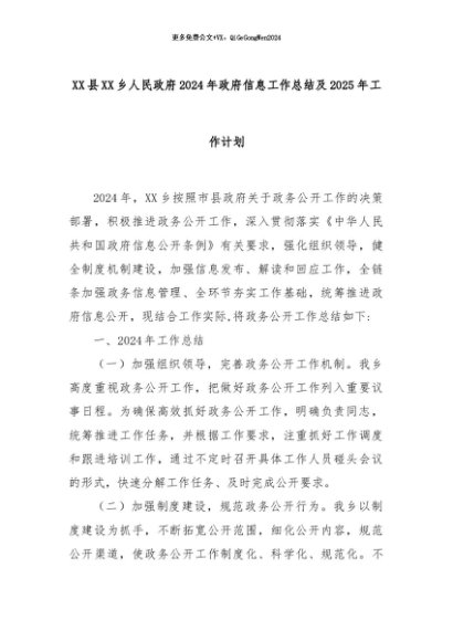 【七哥公文】2024年:XX县XX乡人民政府2024年政府信息工作总结及2025年工作计划+更多免费公文+VX:QiGeGongWen2024