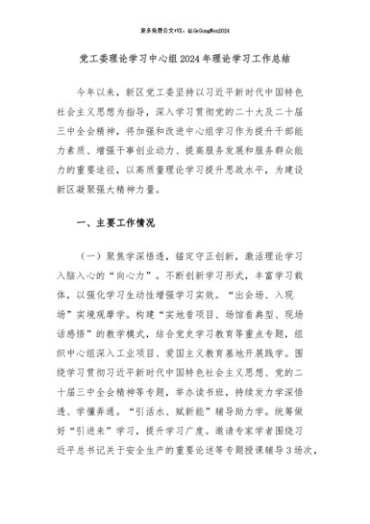 / 【七哥公文】2024年:党工委理论学习中心组2024年理论学习工作总结+更多免费公文+VX:QiGeGongWen2024