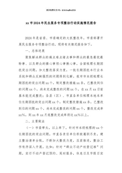 / 【七哥公文】2024年:xx市2024年民生服务专项整治行动实施情况报告+更多免费公文+VX:QiGeGongWen2024