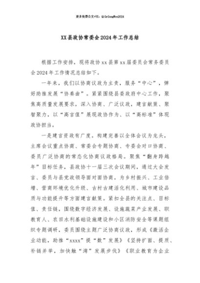 / 【七哥公文】2024年:XX县政协常委会2024年工作总结+更多免费公文+VX:QiGeGongWen2024