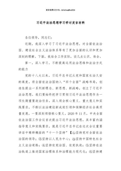 / 【七哥公文】2024年:习近平法治思想学习研讨发言材料+更多免费公文+VX:QiGeGongWen2024
