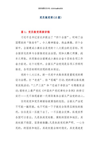 【七哥公文】2024年:(15篇)党员微党课+更多免费公文+VX:QiGeGongWen2024+更多免费公文+VX:QiGeGongWen2024