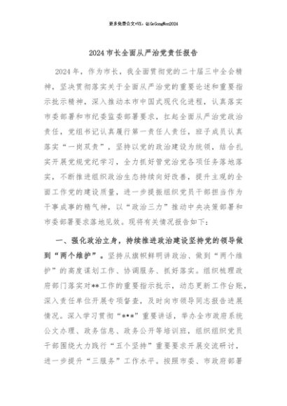 / 【七哥公文】2024年:2024市长全面从严治党责任报告+更多免费公文+VX:QiGeGongWen2024