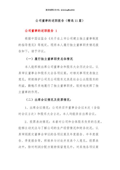 【七哥公文】2024年:(11篇)公司董事的述职报告+更多免费公文+VX:QiGeGongWen2024+更多免费公文+VX:QiGeGongWen2024