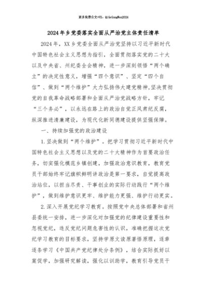 / 【七哥公文】2024年:2024年乡党委落实全面从严治党主体责任清单+更多免费公文+VX:QiGeGongWen2024