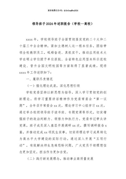 【七哥公文】2024年:领导班子2024年述职报告(学校—高校)+更多免费公文+VX:QiGeGongWen2024+更多免费公文+VX:QiGeGongWen2024