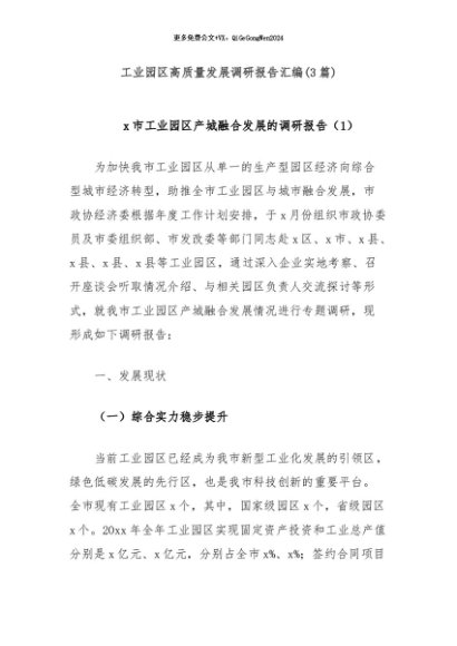 / 【七哥公文】2024年:(3篇)工业园区高质量发展调研报告汇编+更多免费公文+VX:QiGeGongWen2024
