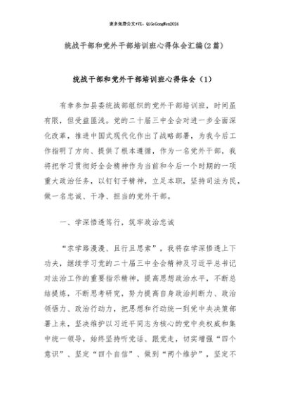 / 【七哥公文】2024年:(2篇)统战干部和党外干部培训班心得体会汇编+更多免费公文+VX:QiGeGongWen2024
