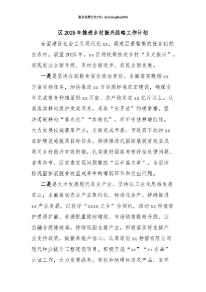 【七哥公文】2024年:区2025年推进乡村振兴战略工作计划+更多免费公文+VX:QiGeGongWen2024+更多免费公文+VX:QiGeGongWen2024