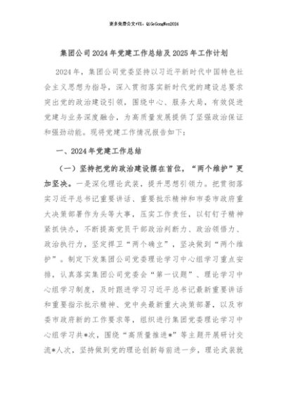 【七哥公文】2024年:集团公司2024年党建工作总结及2025年工作计划+更多免费公文+VX:QiGeGongWen2024+更多免费公文+VX:QiGeGongWen2024