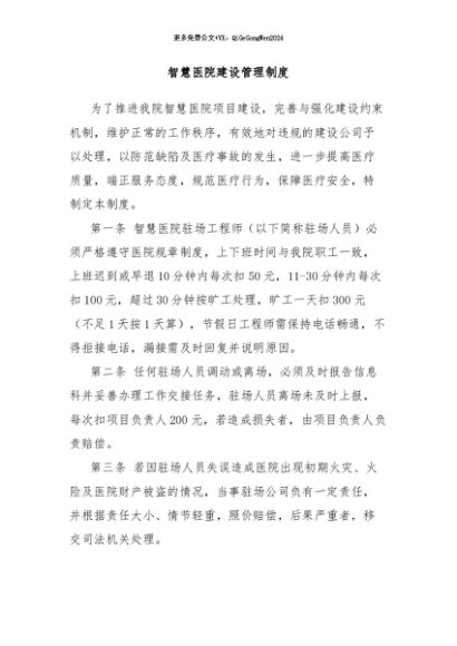 【七哥公文】2024年:智慧医院建设管理制度+更多免费公文+VX:QiGeGongWen2024+更多免费公文+VX:QiGeGongWen2024