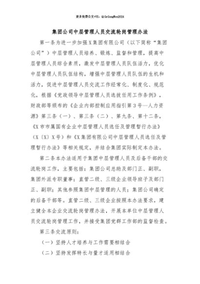 【七哥公文】2024年:集团公司中层管理人员交流轮岗管理办法+更多免费公文+VX:QiGeGongWen2024+更多免费公文+VX:QiGeGongWen2024