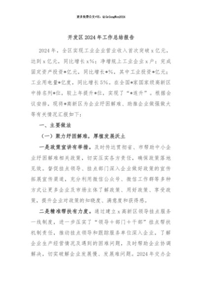 【七哥公文】2024年:开发区2024年工作总结报告+更多免费公文+VX:QiGeGongWen2024+更多免费公文+VX:QiGeGongWen2024