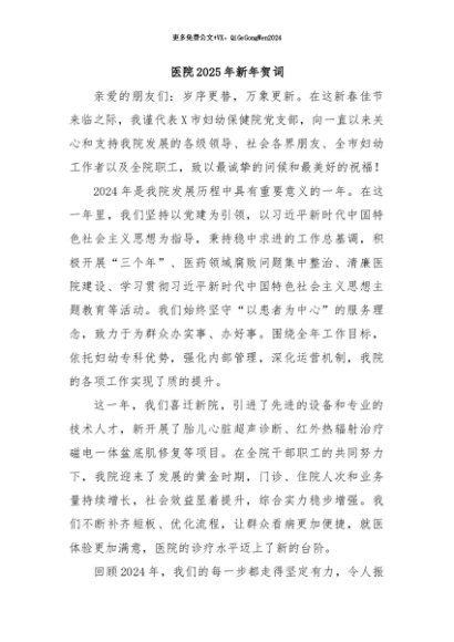 【七哥公文】2024年:医院2025年新年贺词 (2)+更多免费公文+VX:QiGeGongWen2024+更多免费公文+VX:QiGeGongWen2024