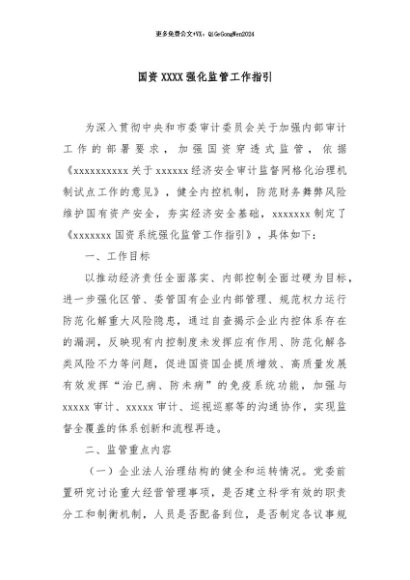 【七哥公文】2024年:国资XXXX强化监管工作指引+更多免费公文+VX:QiGeGongWen2024+更多免费公文+VX:QiGeGongWen2024