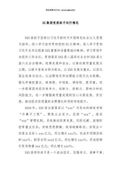 【七哥公文】2024年:XX集团党委班子运行情况+更多免费公文+VX:QiGeGongWen2024+更多免费公文+VX:QiGeGongWen2024