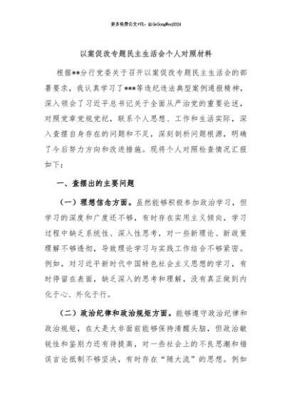 【七哥公文】2024年:以案促改专题民主生活会个人对照材料+更多免费公文+VX:QiGeGongWen2024+更多免费公文+VX:QiGeGongWen2024