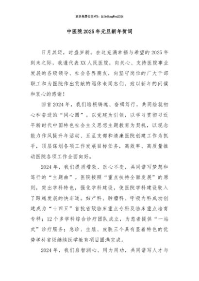 【七哥公文】2024年:中医院2025年元旦新年贺词+更多免费公文+VX:QiGeGongWen2024+更多免费公文+VX:QiGeGongWen2024