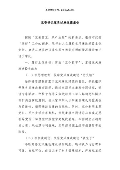 【七哥公文】2024年:党委书记述责述廉述德报告+更多免费公文+VX:QiGeGongWen2024+更多免费公文+VX:QiGeGongWen2024