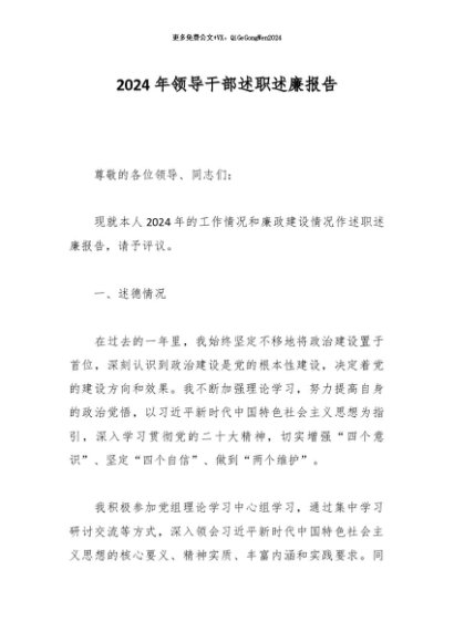【七哥公文】2024年:2024年领导干部述职述廉报告+更多免费公文+VX:QiGeGongWen2024+更多免费公文+VX:QiGeGongWen2024
