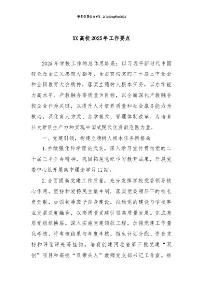 【七哥公文】2024年:XX高校2025年工作要点+更多免费公文+VX:QiGeGongWen2024+更多免费公文+VX:QiGeGongWen2024
