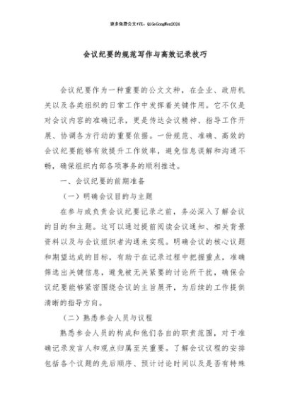 【七哥公文】2024年:会议纪要的规范写作与高效记录技巧+更多免费公文+VX:QiGeGongWen2024+更多免费公文+VX:QiGeGongWen2024
