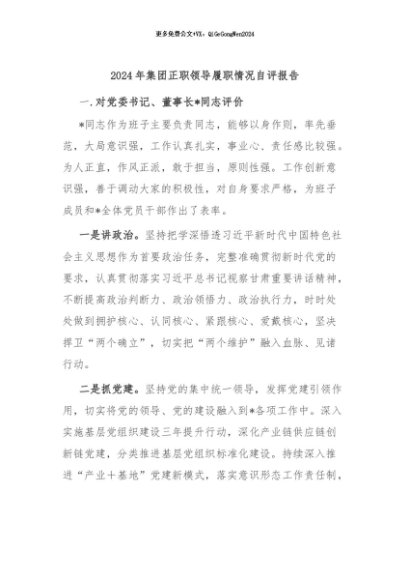 【七哥公文】2024年:2024年集团正职领导履职情况自评报告+更多免费公文+VX:QiGeGongWen2024+更多免费公文+VX:QiGeGongWen2024