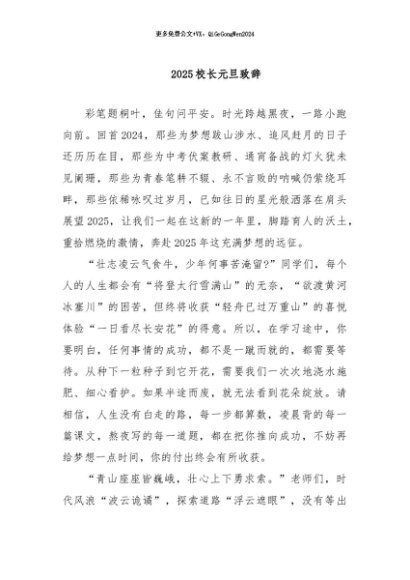 【七哥公文】2024年:2025校长元旦致辞(通用)+更多免费公文+VX:QiGeGongWen2024+更多免费公文+VX:QiGeGongWen2024