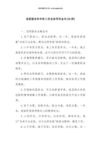 【七哥公文】2024年:(35例)述职报告和年终工作总结写作金句+更多免费公文+VX:QiGeGongWen2024+更多免费公文+VX:QiGeGongWen2024