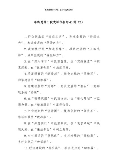 【七哥公文】2024年:(40例)年终总结三段式写作金句(2)+更多免费公文+VX:QiGeGongWen2024+更多免费公文+VX:QiGeGongWen2024