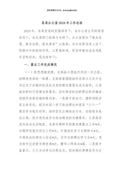 / 【七哥公文】2024年:某局办公室2024年工作总结+更多免费公文+VX:QiGeGongWen2024