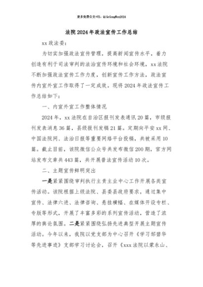 / 【七哥公文】2024年:法院2024年政法宣传工作总结+更多免费公文+VX:QiGeGongWen2024