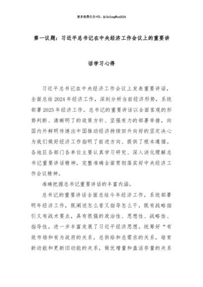 【七哥公文】2024年:第一议题:习近平总书记在中央经济工作会议上的重要讲话学习心得+更多免费公文+VX:QiGeGongWen2024