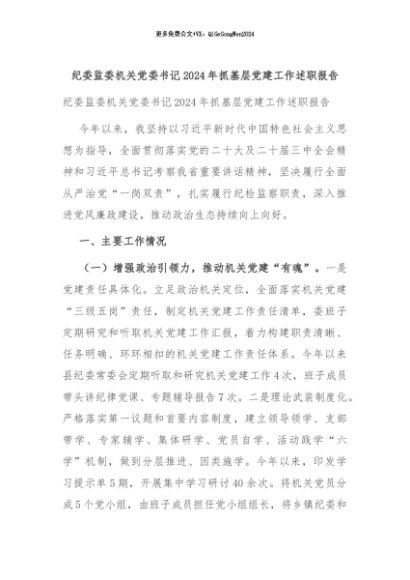 【七哥公文】2024年:纪委监委机关党委书记2024年抓基层党建工作述职报告+更多免费公文+VX:QiGeGongWen2024