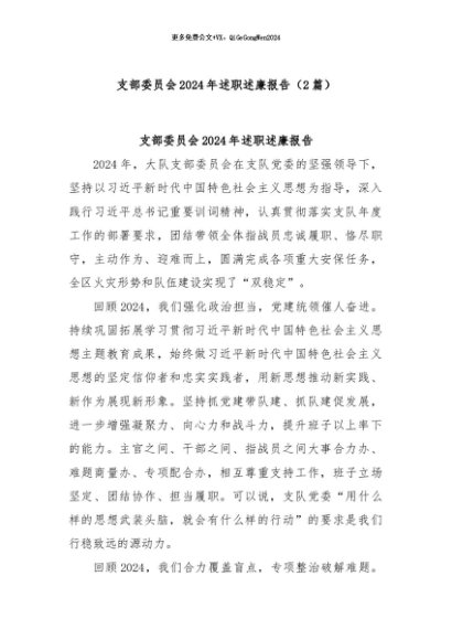 【七哥公文】2024年:(2篇)支部委员会2024年述职述廉报告+更多免费公文+VX:QiGeGongWen2024+更多免费公文+VX:QiGeGongWen2024