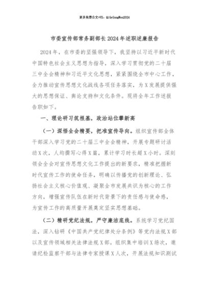 / 【七哥公文】2024年:市委宣传部常务副部长2024年述职述廉报告+更多免费公文+VX:QiGeGongWen2024