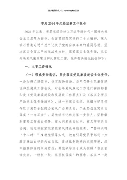 / 【七哥公文】2024年:市局2024年纪检监察工作报告+更多免费公文+VX:QiGeGongWen2024