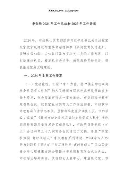 / 【七哥公文】2024年:市妇联2024年工作总结和2025年工作计划+更多免费公文+VX:QiGeGongWen2024