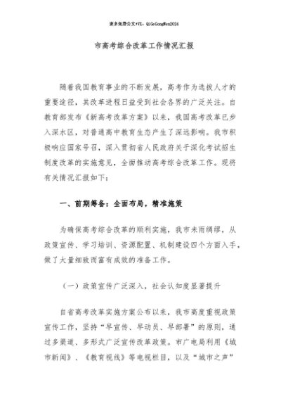 / 【七哥公文】2024年:市高考综合改革工作情况汇报+更多免费公文+VX:QiGeGongWen2024