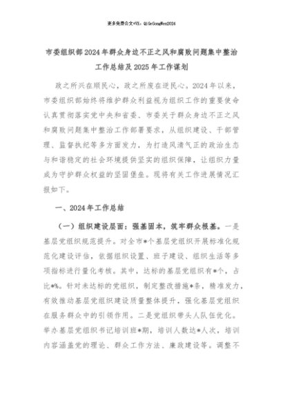 【七哥公文】2024年:市委组织部2024年群众身边不正之风和腐败问题集中整治工作总结及2025年工作谋划+更多免费公文+VX:QiGeGongWen2024