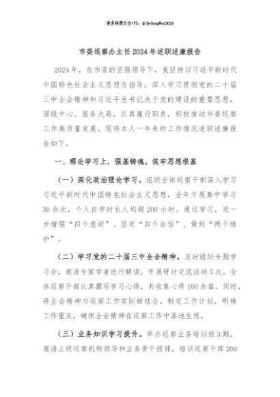 / 【七哥公文】2024年:市委巡察办主任2024年述职述廉报告+更多免费公文+VX:QiGeGongWen2024