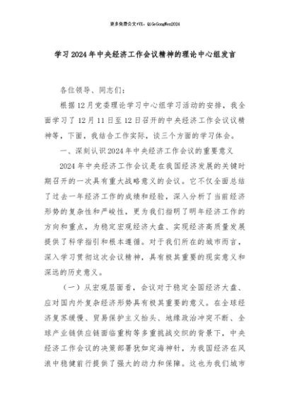 【七哥公文】2024年:学习2024年中央经济工作会议精神的理论中心组发言+更多免费公文+VX:QiGeGongWen2024